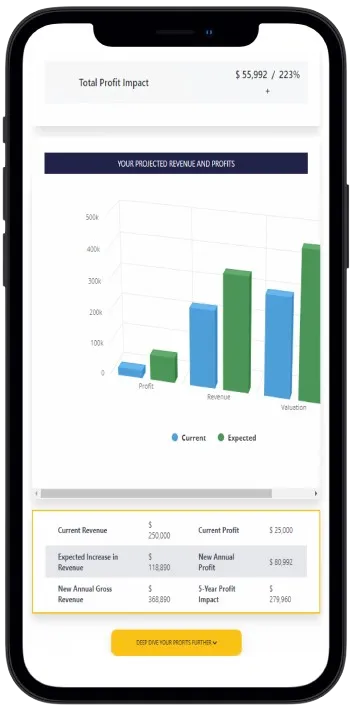 Your Profit Acceleration App comes with a 45 minute consultation for you to book at your convenience. Your Professional Business Coach will go over your scenarios, discuss possible outcomes, and provide you with a FREE Roadmap to implement your plan.